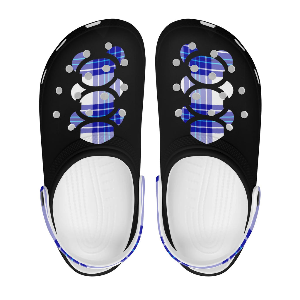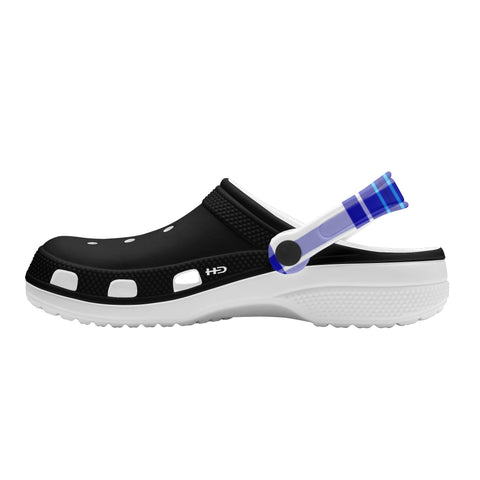 * Custom all over printed sandals with a rounded style and vent holes for added fun and breathability.