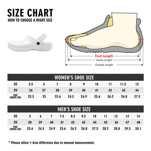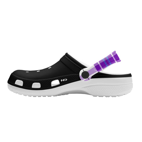 Custom all over printed sandals with a rounded style and vent holes for added fun and breathability.